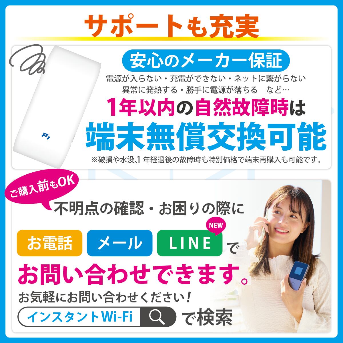 ![【数量限定:データ増量】[インスタントWi-Fi]P1 モバイルバッテリー機能付きモバイルWi-Fi 100GB(有効期間365日間) 回線プラン入りWi-Fi端末セット](https://baseec-img-mng.akamaized.net/images/item/origin/0a3699f08c3f7635b1c2d2d87647b30a.png?imformat=generic&q=90&im=Resize,width=76,type=normal)