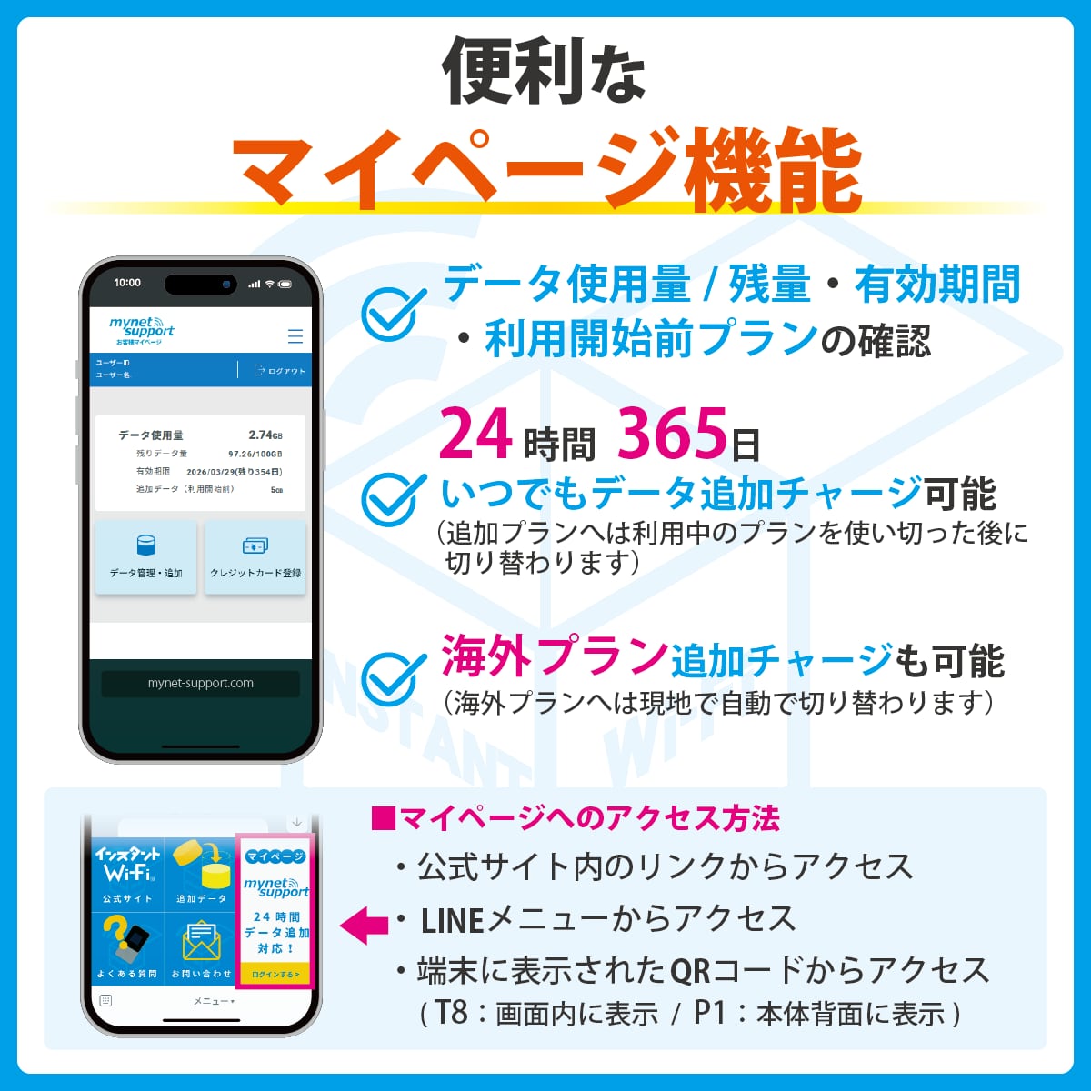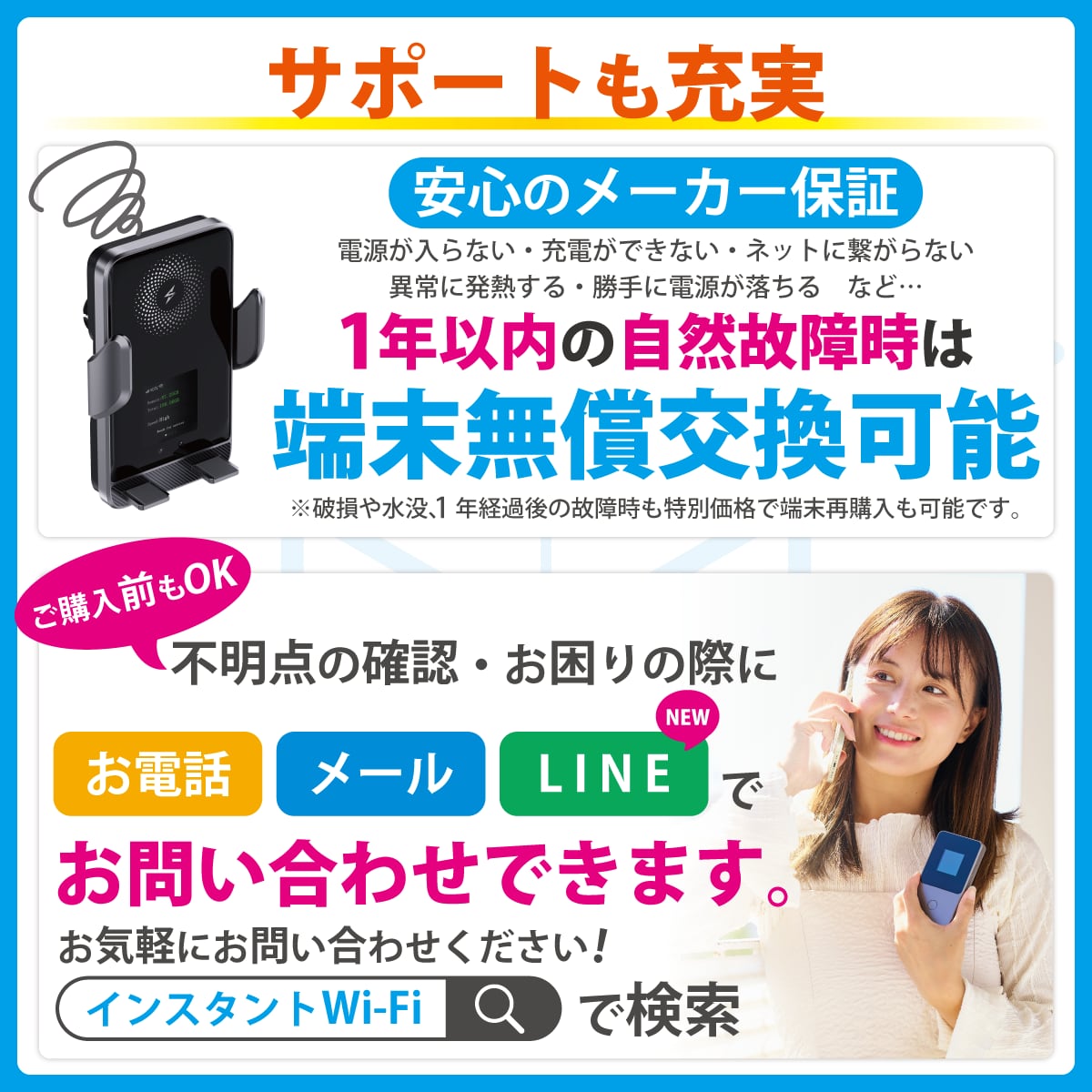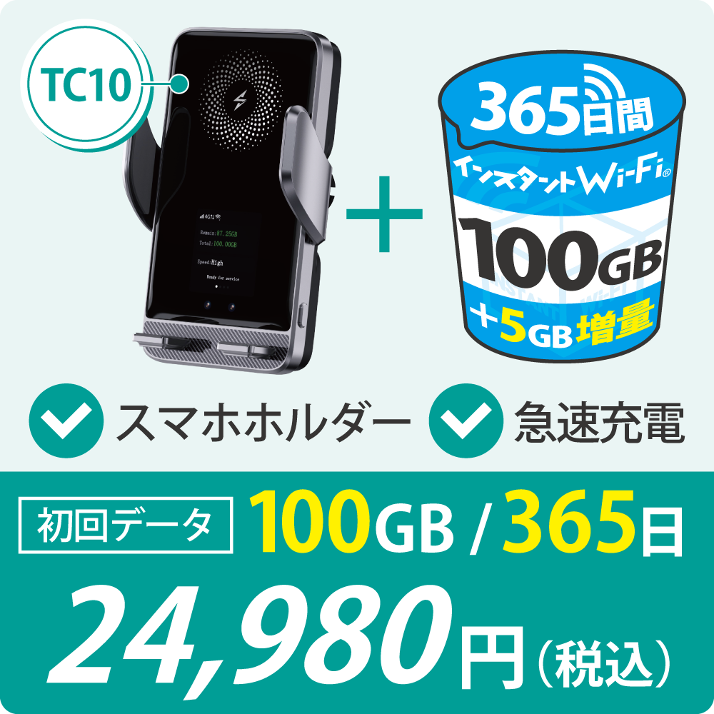 【数量限定:データ増量】新商品[インスタントWi-Fi]TC10 100GB 1年間 スマホホルダー 急速充電 車載 カー ポケットWiFi モバイル 買い切り プリペイド 365日 追加ギガチャージ (100GB)