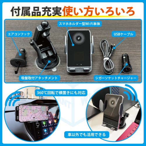 ワイヤレス急速充電搭載のスマホホルダー型のモバイルWi-Fiです!