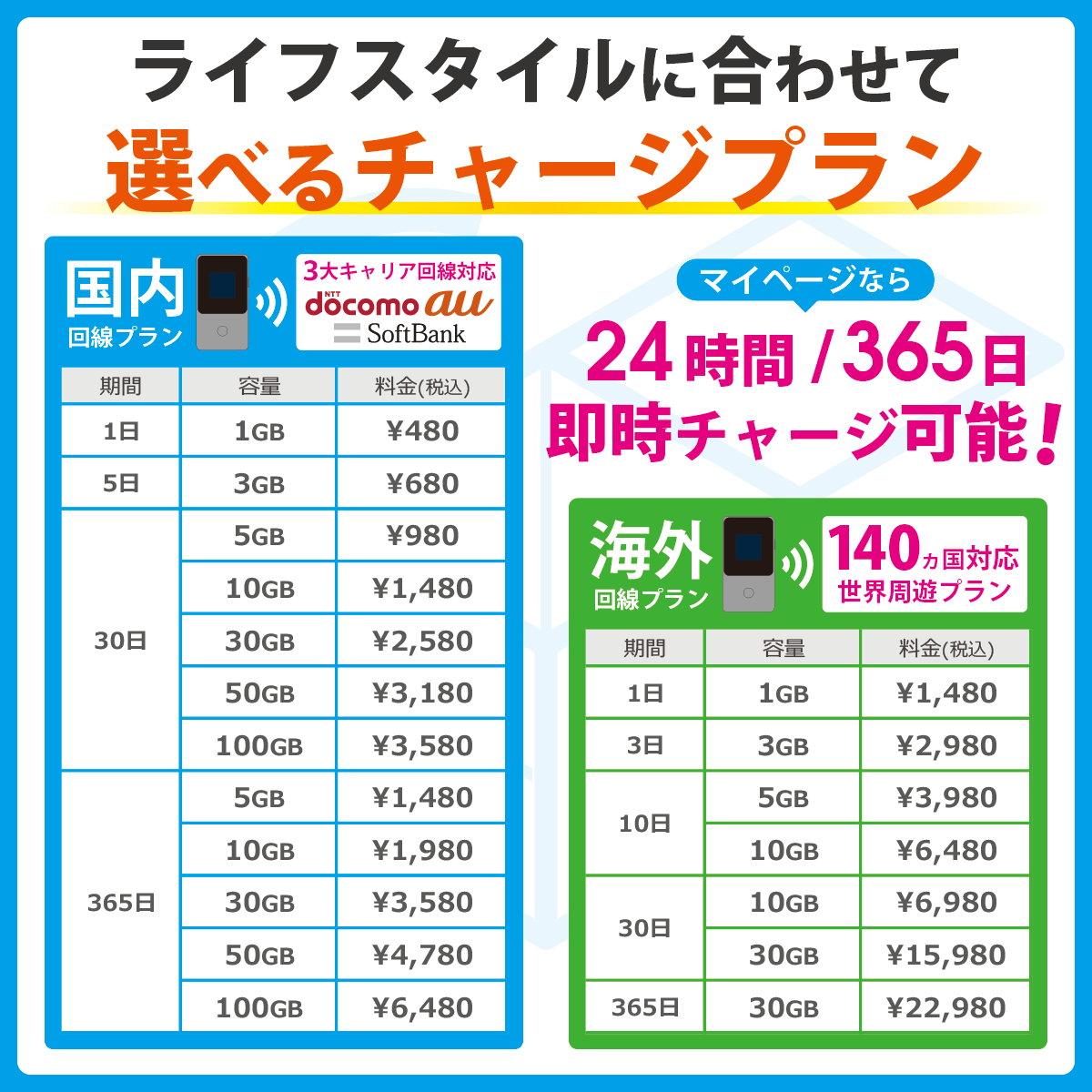 ※初期チャージデータを使いきった後は、追加データをご購入いただけます。